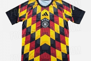 体育资讯1月31日讯 据著名的足球装备网站Footy Headlines报道,阿迪达斯为德国国家队打造的2026年世界杯赛前训练衫谍照已经流出。