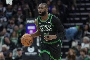 此役凯尔特人球星杰伦·布朗继续出色发挥,打了29分钟20投12中,三分6中4、罚球3中2砍全场最高30分13篮板外加2助攻1抢断,也有4失误,正负值+16。