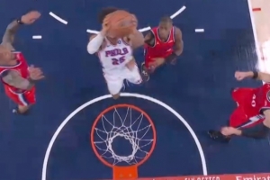 肯巴·沃克来到现场 见证米勒打破自己的队史连续罚球命中纪录