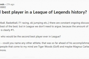 体育资讯2月4日讯 近日Reddit网友针对谁是英雄联盟历史上第二伟大的选手进行了热烈讨论;
