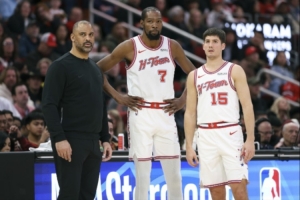 火箭(33-19):杜兰特26分6板3助3断、申京22分7板5助、谢泼德16分6板4助、阿门16分6板1助、史密斯13分10板3助、伊森6分5板1助、芬尼-史密斯3分1板2助、卡佩拉3板2帽