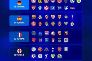 体育资讯9月22日讯 德国转会市场统计了1992-93赛季欧冠改制以来,欧洲五大联赛参加欧冠正赛情况,德甲共15队出现在欧冠赛场最多,意甲11队最少。