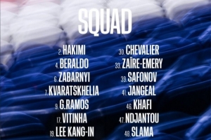 前锋:7-克瓦拉茨赫利亚、9-贡萨洛-拉莫斯、19-李刚仁、29-巴尔科拉、41-詹格尔、47-恩贾恩图、49-姆巴耶