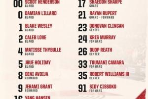 亨德森、利拉德、布雷克-韦斯利、凯莱布-乐福、塞布尔、朱-霍勒迪、阿夫迪亚、杰拉米-格兰特、杨瀚森、夏普、吕佩尔、克林根、克里斯-穆雷、杜普-里斯、卡马拉、罗威、西索科。
