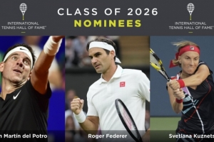 体育资讯10月1日讯 官方消息,费德勒、德尔波特罗和库兹涅佐娃入围2026年网球名人堂候选名单。