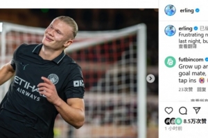哈兰德写道:“昨晚未能拿到3分令人沮丧,但我们将继续前进。 ”