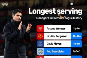 体育资讯10月13日讯 媒体统计了主帅连续执教一家英超俱乐部的时间,并列出最长时间排名,温格21年零8个月居首,弗格森次席,瓜迪奥拉第4,阿尔特塔第10。