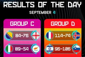 体育资讯09月05日讯 男篮欧锦赛当地时间9月4日的6场小组赛全部结束,详细赛果如下: