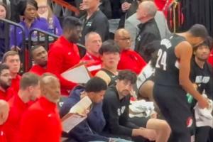 一看分差30+!波尔津吉斯和普理查德争抢篮球 笑哈哈互不相让