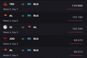 体育资讯9月5日讯 国外数据网站esports charts统计,LPL第三赛段常规赛在外网观看前五的比赛分别是: