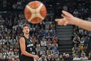 小组赛五战全胜且场均净胜32.8分的德国队半场结束仍然落后对手1分。