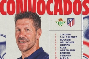 体育资讯10月27日讯 北京时间明天凌晨4点,马竞将在西甲第10轮比赛中客场对阵贝蒂斯,马竞公布了此役的球员名单,卡尔多索回归。