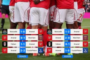 然而上赛季在相同的主客场对阵情况下,阿森纳面对这4个对手2平2负,只拿到2分。对比下来,本赛季的阿森纳相当于在这4轮赛程里比上赛季多拿了10分。