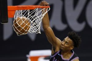 摧枯拉朽!米切尔送妙传 阿伦腾空暴起单臂炸裂劈扣