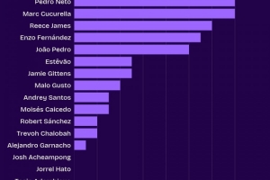 体育资讯10月31日讯 数据机构squakwa统计了本赛季切尔西队内的英超创造机会情况,库库雷利亚和内托并列居首。