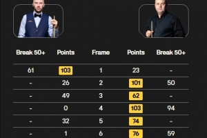 最终,马奎尔6-1淘汰舒尔第,挺进四强,迎战希金斯与墨菲间的胜者。