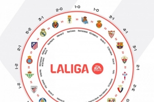 体育资讯11月13日讯 西甲官方更新社媒动态,晒出本赛季各队胜负闭环图片。