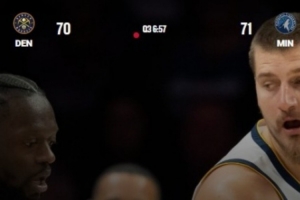 掘金客场123-112力克森林狼,比赛已经结束一个半小时,官网数据仍然停留在第三节。