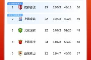 体育资讯08月31日讯 中超第23轮部分比赛结束,最新积分榜方面:蓉城凭借对海港的主场大胜成功登顶,争冠对手申花(0-1三镇)、海港(1-4蓉城)本轮均输球分居第2、3名,国安客场0-6大败降至第4,泰山第5。