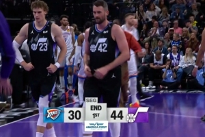 体育资讯11月22日讯 NBA杯,爵士首节44-30领先雷霆。