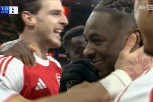 在埃泽下半场刚开场打进第二球,阿森纳3-0领先时,赖斯在与队友庆祝时朝队友喊道:“嘿!让我们杀了他们,他X的杀了他们吧!”许多球迷在社交媒体指出,转播镜头清晰捕捉到了赖斯的这句话。