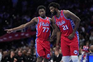 受伤病影响,乔治(右脚踝伤势)缺席了上场比赛,恩比德(右膝伤势)缺席了过去8场比赛,埃奇库姆(小腿伤势)缺席了过去2场比赛。