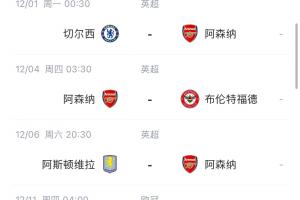 阿森纳下场将回到英超,客场挑战第二的切尔西,枪手若取胜将扩大联赛领先优势(目前领先6分)。