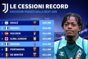 体育资讯9月12日讯 德转统计了尤文青训球员卖人榜,苏莱2560万欧加盟罗马居首,法乔利、赫伊森分居二三位。