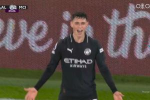 体育资讯12月03日讯 曼城vs富勒姆第44分钟,福登世界波破门,此时比分变为曼城3-0领先!