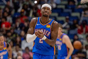 本场比赛,亚历山大出战34分钟,投篮21中13,三分6中5,罚球10中7,砍下38分3篮板4助攻1抢断,并且0失误。