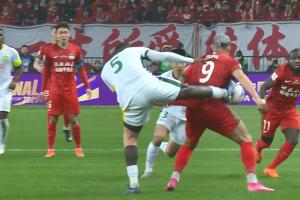 上半场补时阶段,恩加德乌飞踢卡多索腰部,裁判出示黄牌。