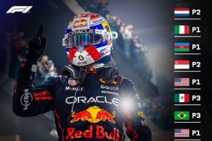 自荷兰站开始,维斯塔潘连续10场比赛登上领奖台,其中6站拿到冠军,亚军和季军各拿到2次。