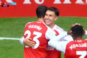 体育资讯09月13日讯 英超第4轮,阿森纳vs诺丁汉森林。比赛第79分钟,苏维门迪头球破门,本场双响!阿森纳3-0领先。